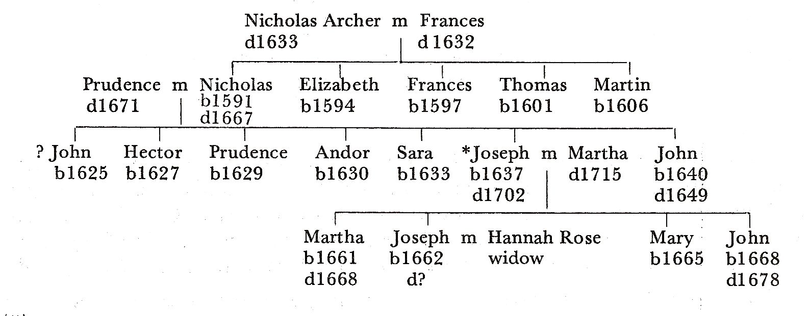 It has been possible to fit together information to form the following table from the parish registers, scattered deeds, the hearth tax and a will for one Joseph Archer and his son Joseph 'the younger'. His name is marked with an asterisk.
