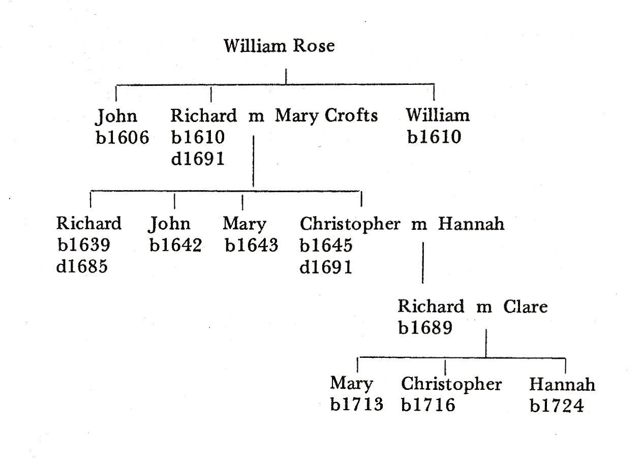 A very striking and most confusing aspect of the Rose family is the repetition of christian names. Among the 50 sons, there were twelve Williams, nine Richards, eight Johns and six Thomases. There were three Christophers, two Roberts, also Edward, Samuel, Nicholas, James, Joseph and Walter.